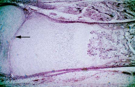 IV-31B Two articular surfaces (arrow) of adjacent bones (developing via endochondral ossification).