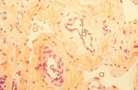 VI-29 (3) Arteriole and Venule. a: lymphatics, b: venule, and c: arteriole.