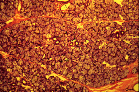 C. Interlobular blood vessel, labeled A