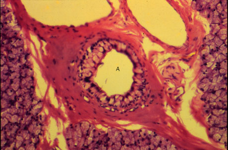 A. Interlobular duct. Note that most of the cells making up its wall are goblet cells.