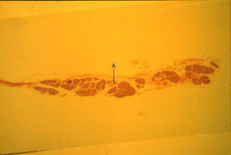 A. Bartholin's duct. On higher magnification, the walls of this duct are seen to be stratified columnar.